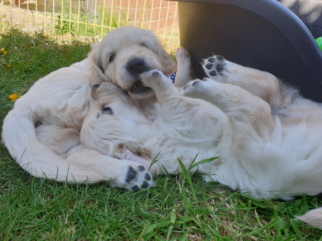 Nur noch 3 Wochen bis die Kleinen in ihre neuen Familien ziehen. Die fünf dürfen seit dieser Woche auch in den Garten und würden am liebsten den ganzen Tag dort verbringen. Außerdem waren diese Woche die neuen Familien zum ersten Mal zu Besuch.