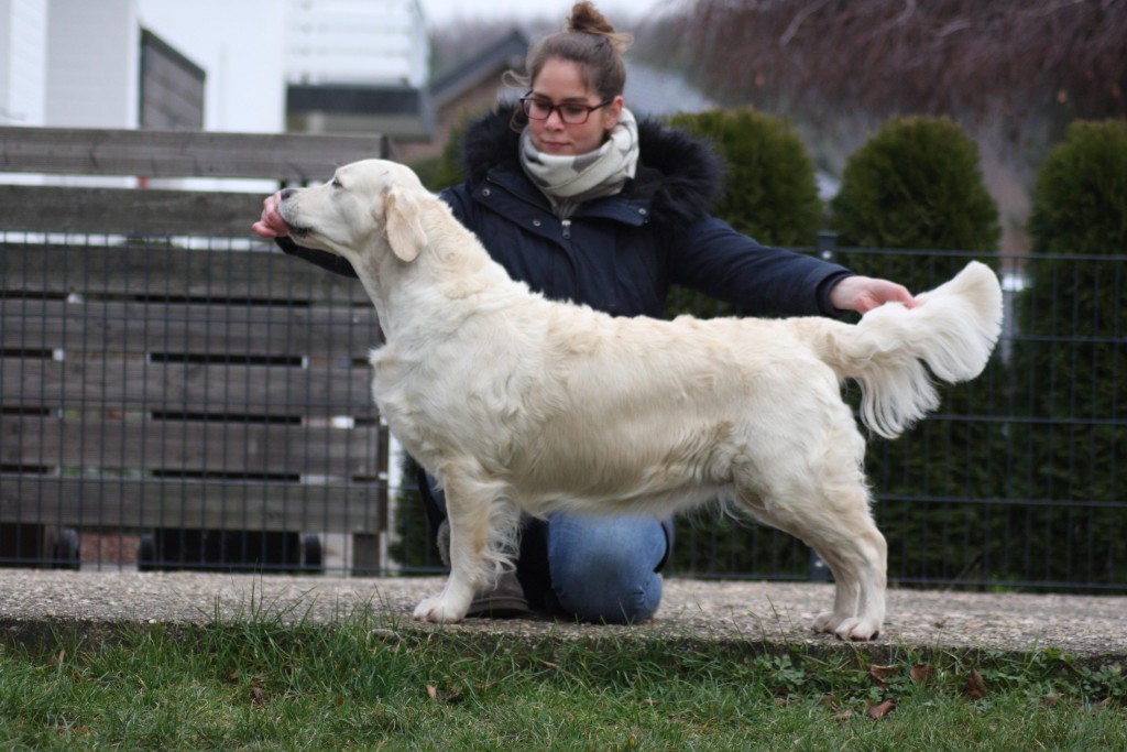 Vorzüglich Sehr harmonisch aufgebaute Hündin von sehr guter Größe, ausdrucksvoller Kopf mit korrekten Details, kräftiger Hals, kompakt gebaut, fester gerader Rücken mit korrektem Rutenansatz, sehr gut ausgeformter Rippenkorb, sehr gute Tiefe, gute Vorbrust, harmonische Winkelungen, sehr gute Knochenstärke, gepflegtes Haarkleid, läuft mit gutem Schub, freies sicheres Verhalten. bestanden am 30.06.2019 in Wenden Richterin: Petra Bannach