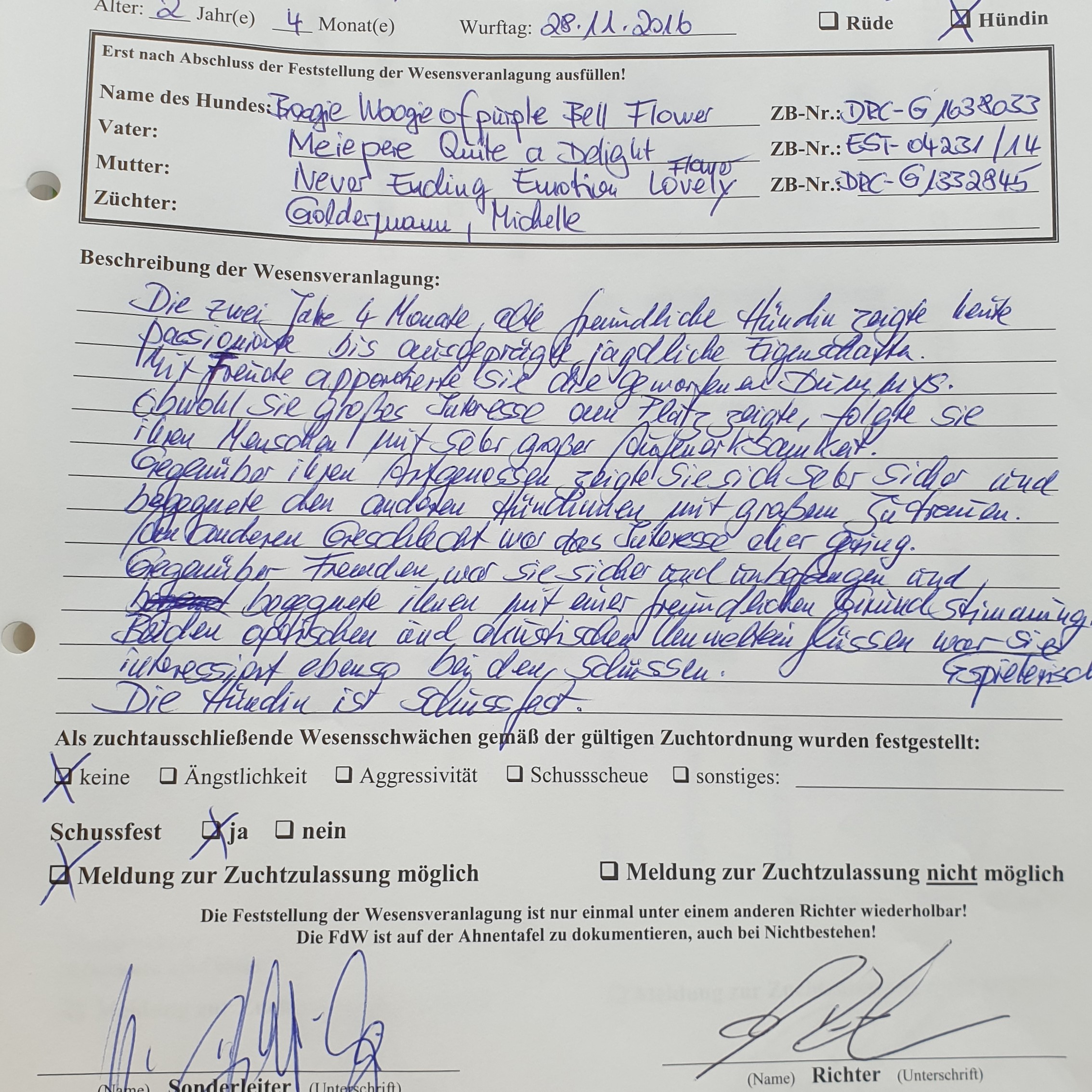 Ella besteht in Gelsenkirchen den Wesenstest und im Anschluss die BHP A m.Sch. unter Richter Andreas Düster.