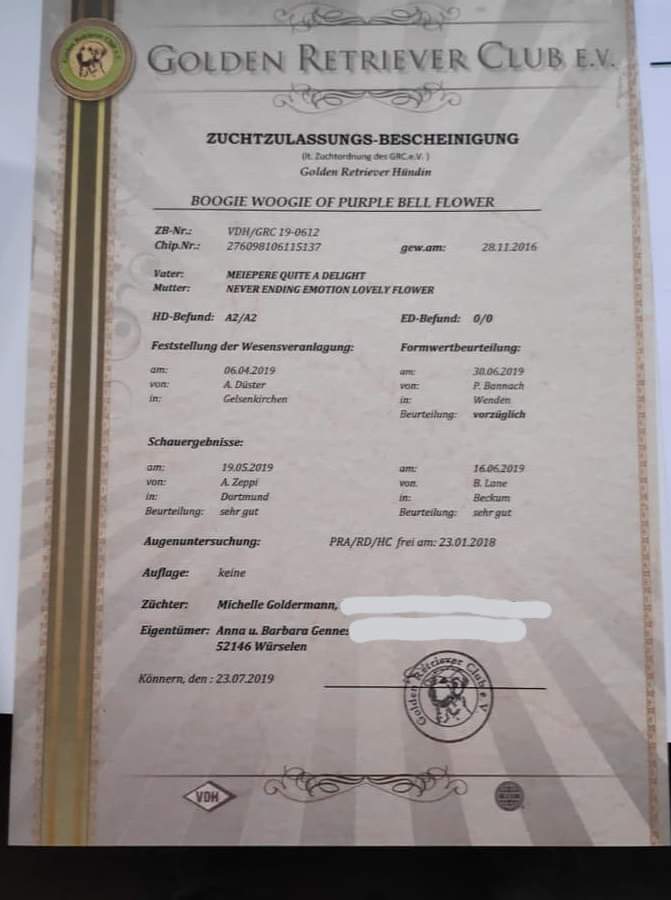 23.07.2019: Zuchtzulassung Ella