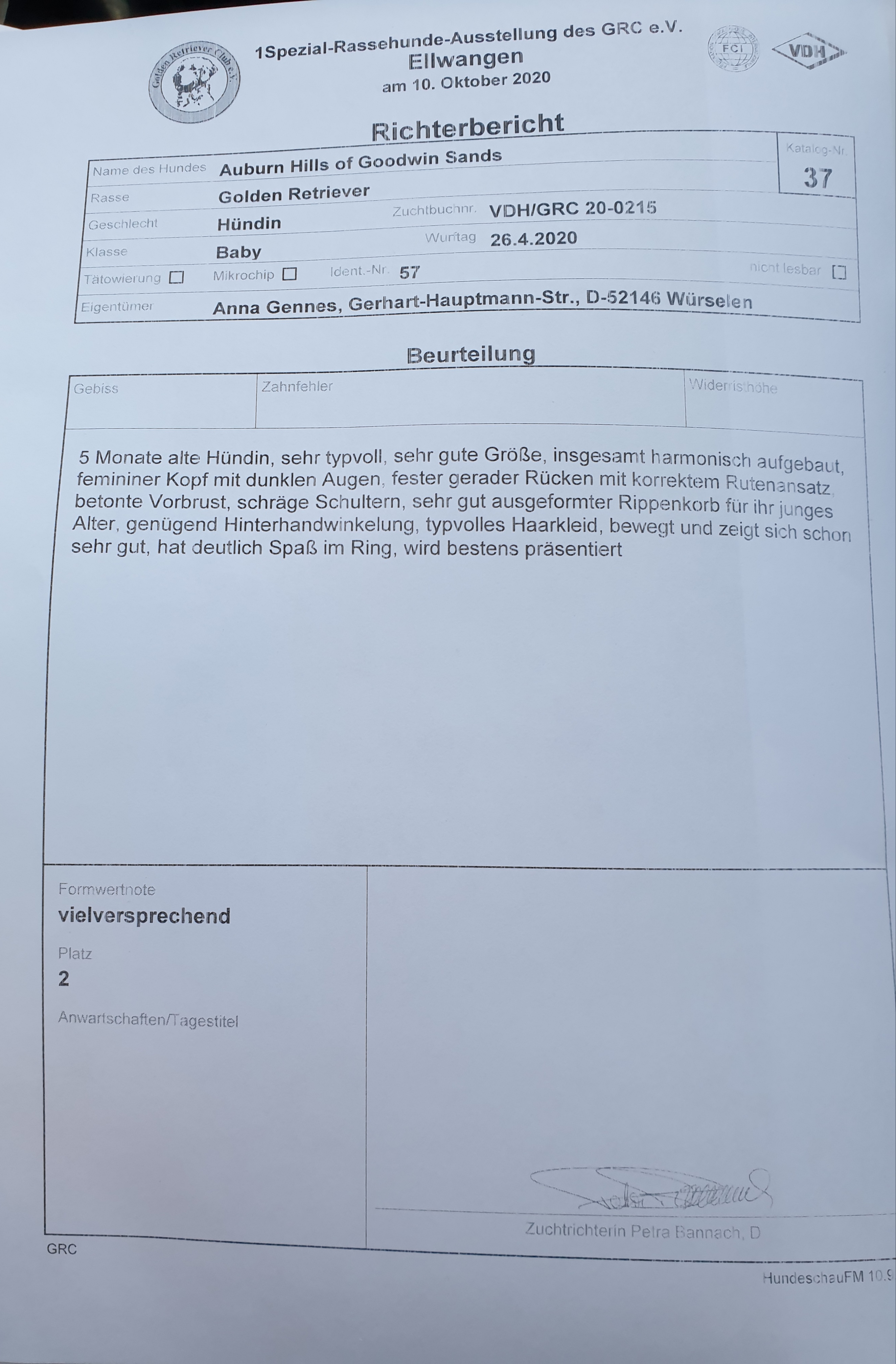 Hailey und ich waren gestern in Ellwangen unterwegs. Auf ihrer 2. Ausstellung startet Hailey (Auburn Hills of Goodwin Sands) wieder in der Babyklasse und erhält ein vielversprechend, Platz 2 mit einem tollen Richterbericht 😍