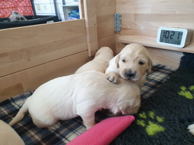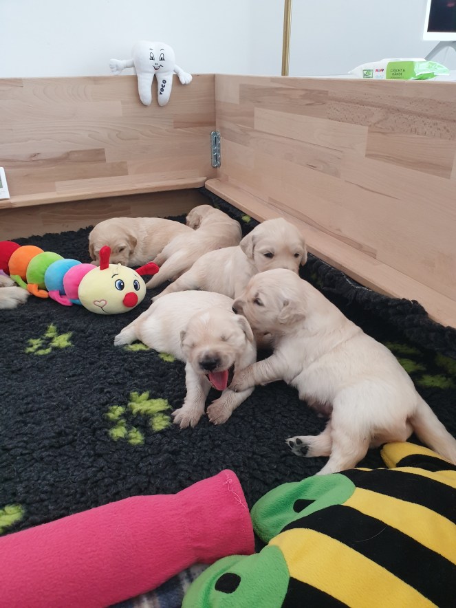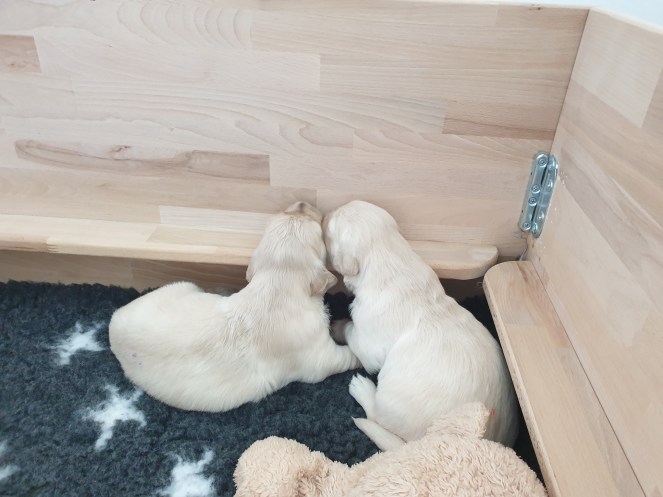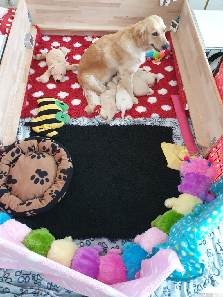 17.05.20: Heute werden die Kleinen schon 3 Wochen alt, die Zeit verfliegt.. Diese Woche war ganz schön spannend für die 5! Mitte der Woche haben wir die Wurfbox geöffnet, sodass sie bereits einen kleinen Teil ihres Innenauslaufs erkunden konnten. Seit gestern ist die Wurfbox komplett abgebaut.