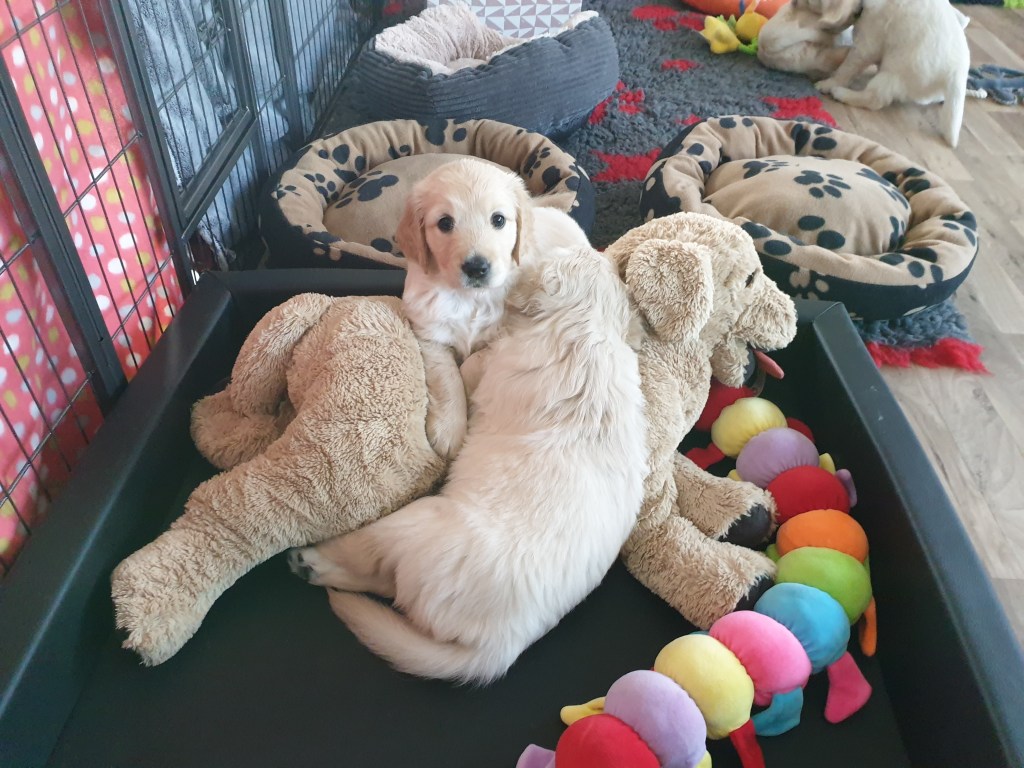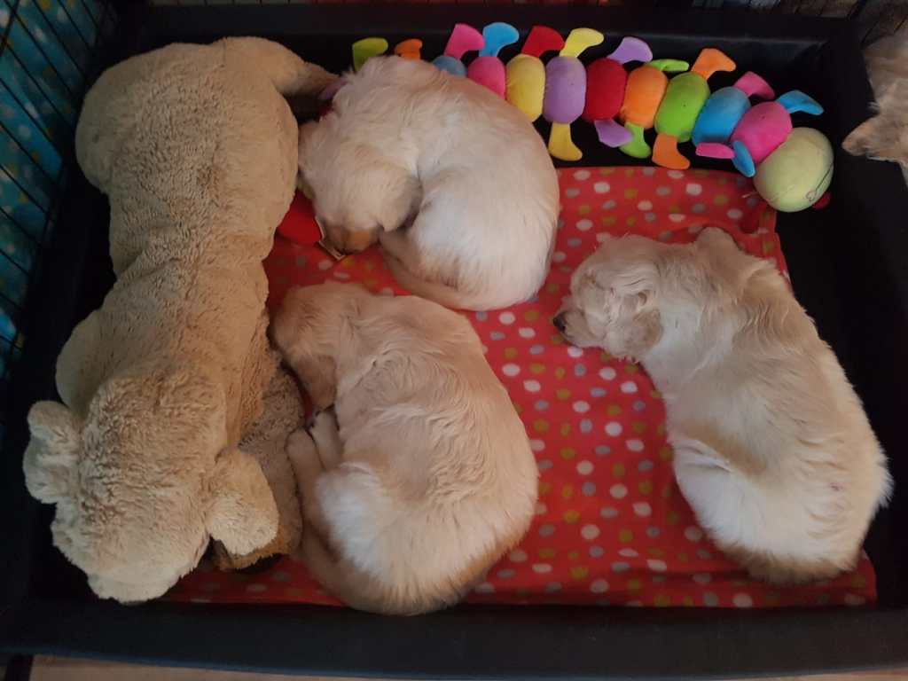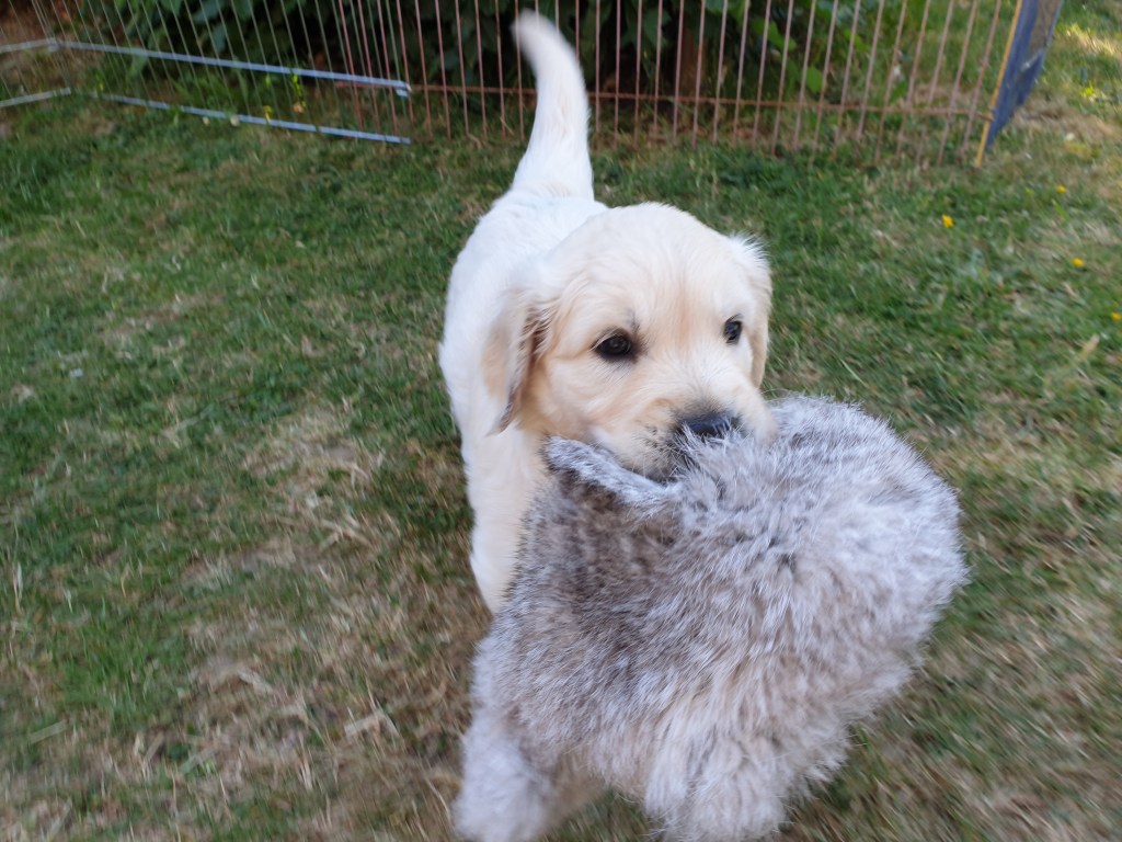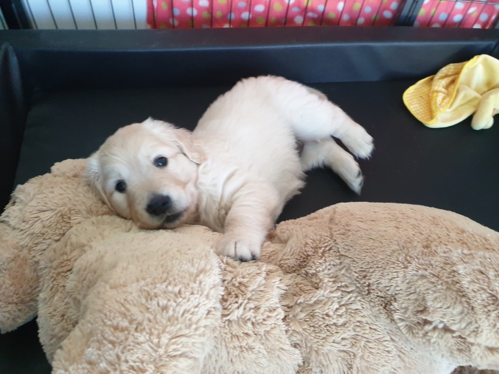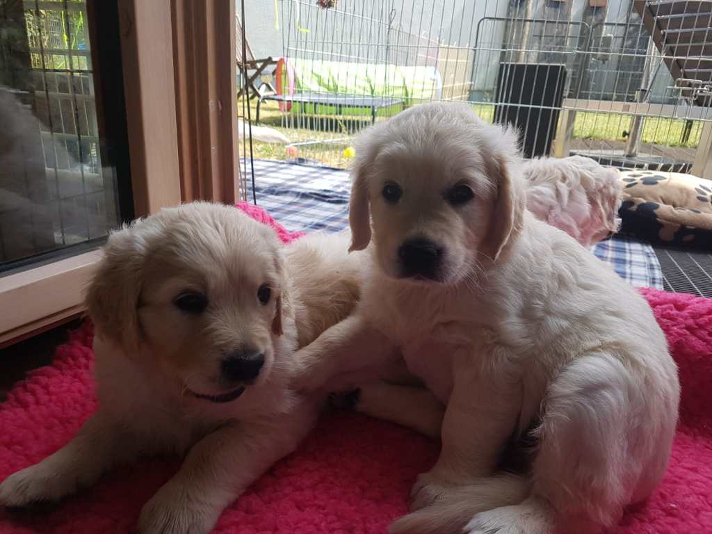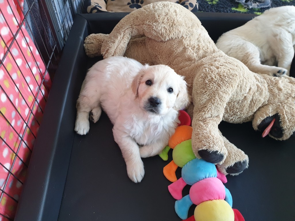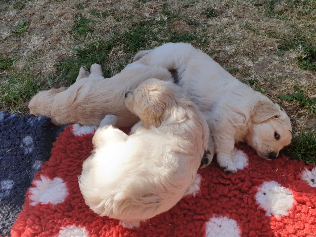 10.06.20: Etwas verspätet die Bilder der sechsten Woche. So langsam heißt es Endspurt. Nur noch 2 Wochen, bis die kleinen in ihre neuen Familien ziehen. Die neuen Welpenfamilien kommen regelmäßig zu Besuch, worüber die fünf sich sichtlich freuen. Endlich haben auch alle einen Namen und so stellt sich unser A-Wurf nun auch ganz offiziell vor: