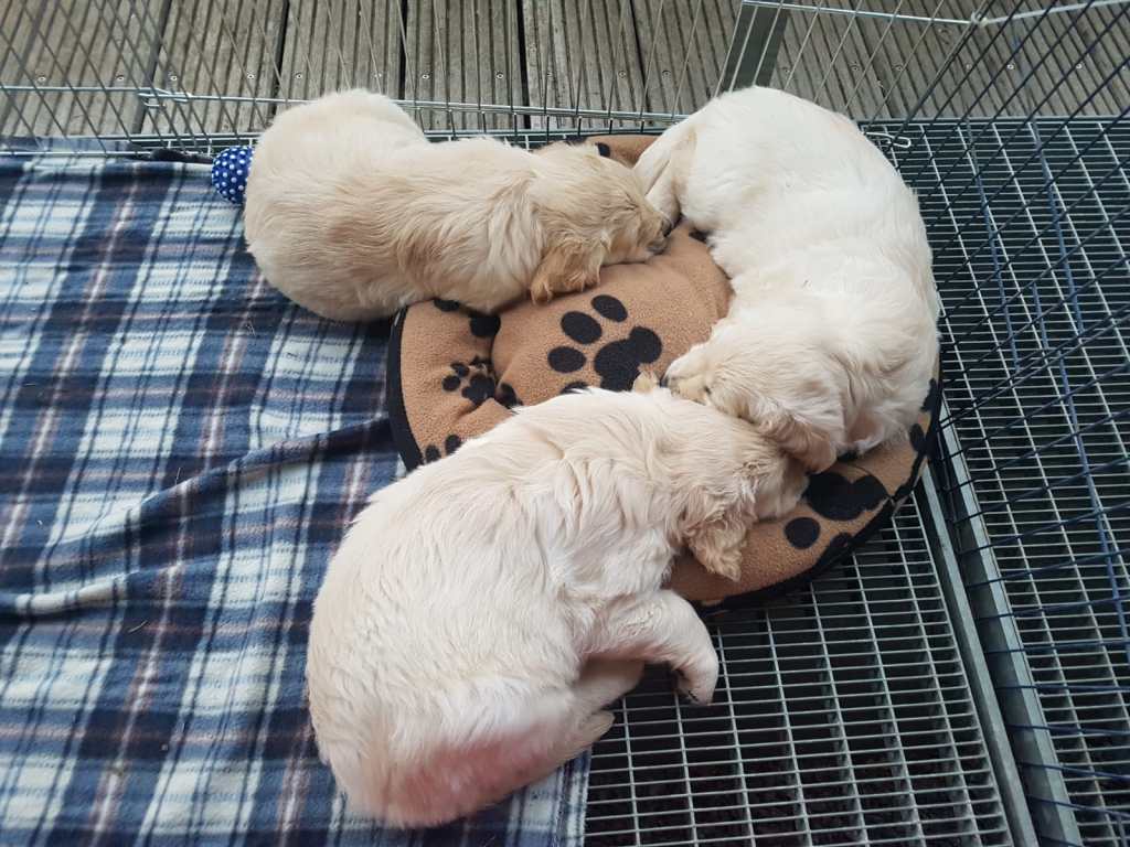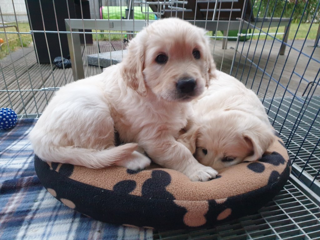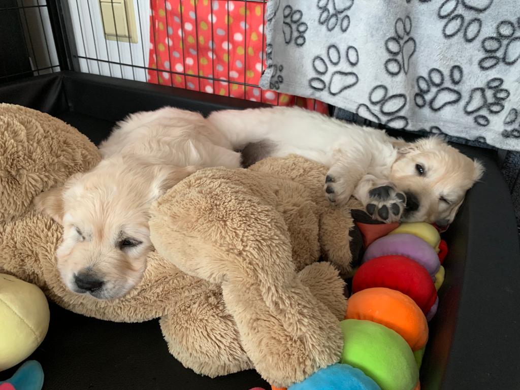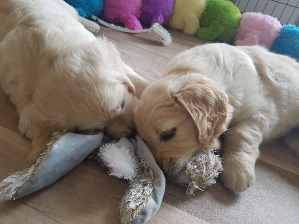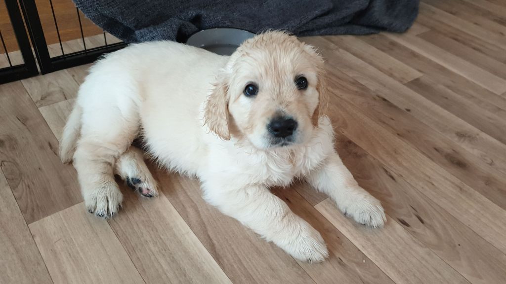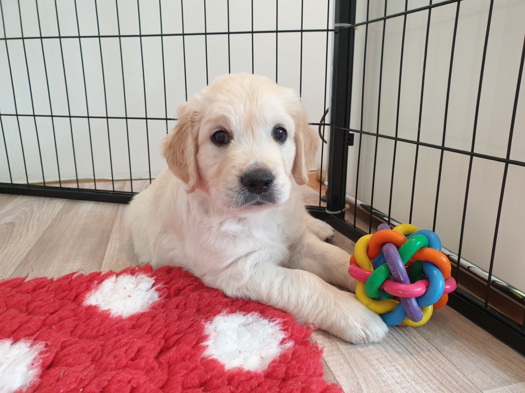 10.06.20: Etwas verspätet die Bilder der sechsten Woche. So langsam heißt es Endspurt. Nur noch 2 Wochen, bis die kleinen in ihre neuen Familien ziehen. Die neuen Welpenfamilien kommen regelmäßig zu Besuch, worüber die fünf sich sichtlich freuen. Endlich haben auch alle einen Namen und so stellt sich unser A-Wurf nun auch ganz offiziell vor: