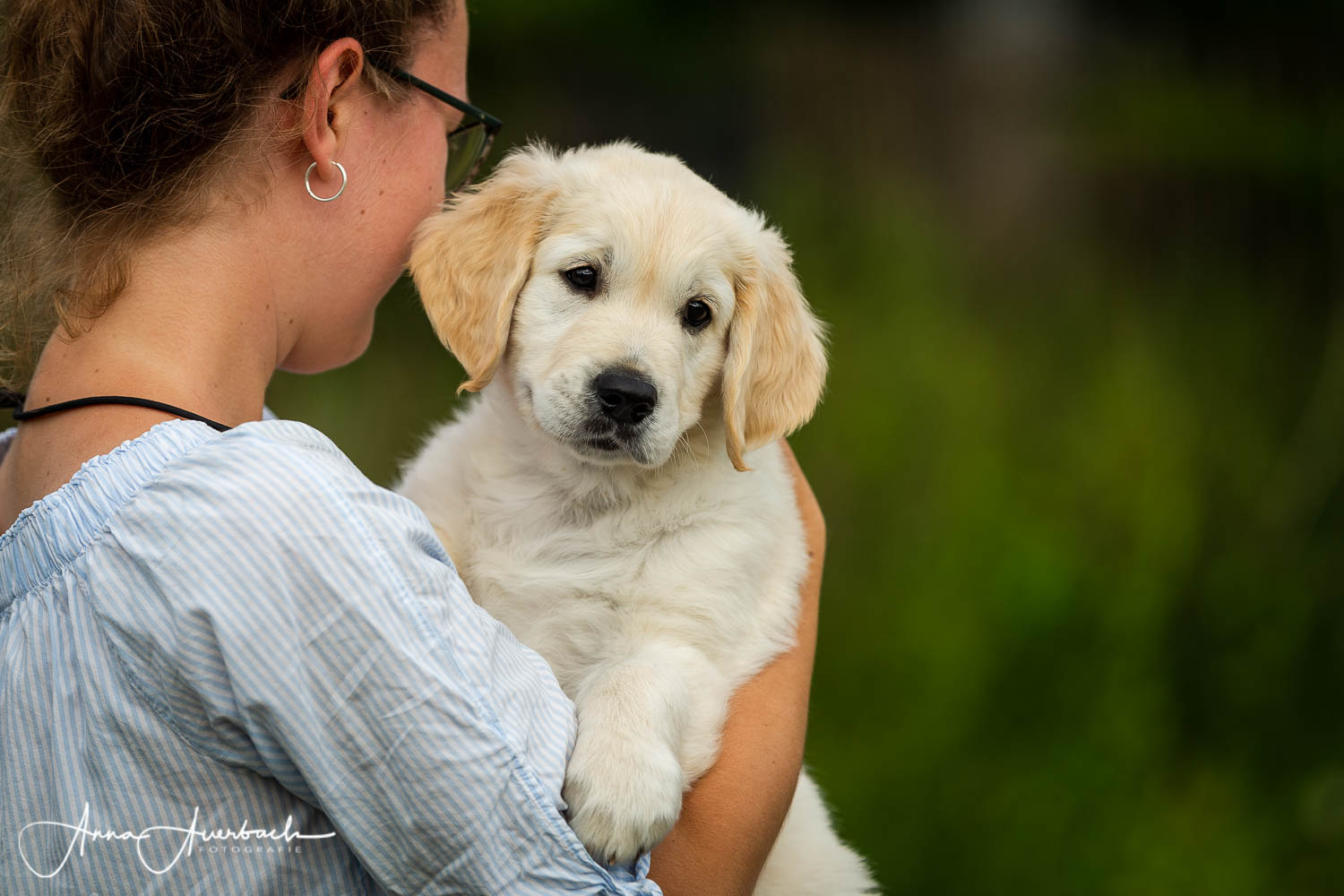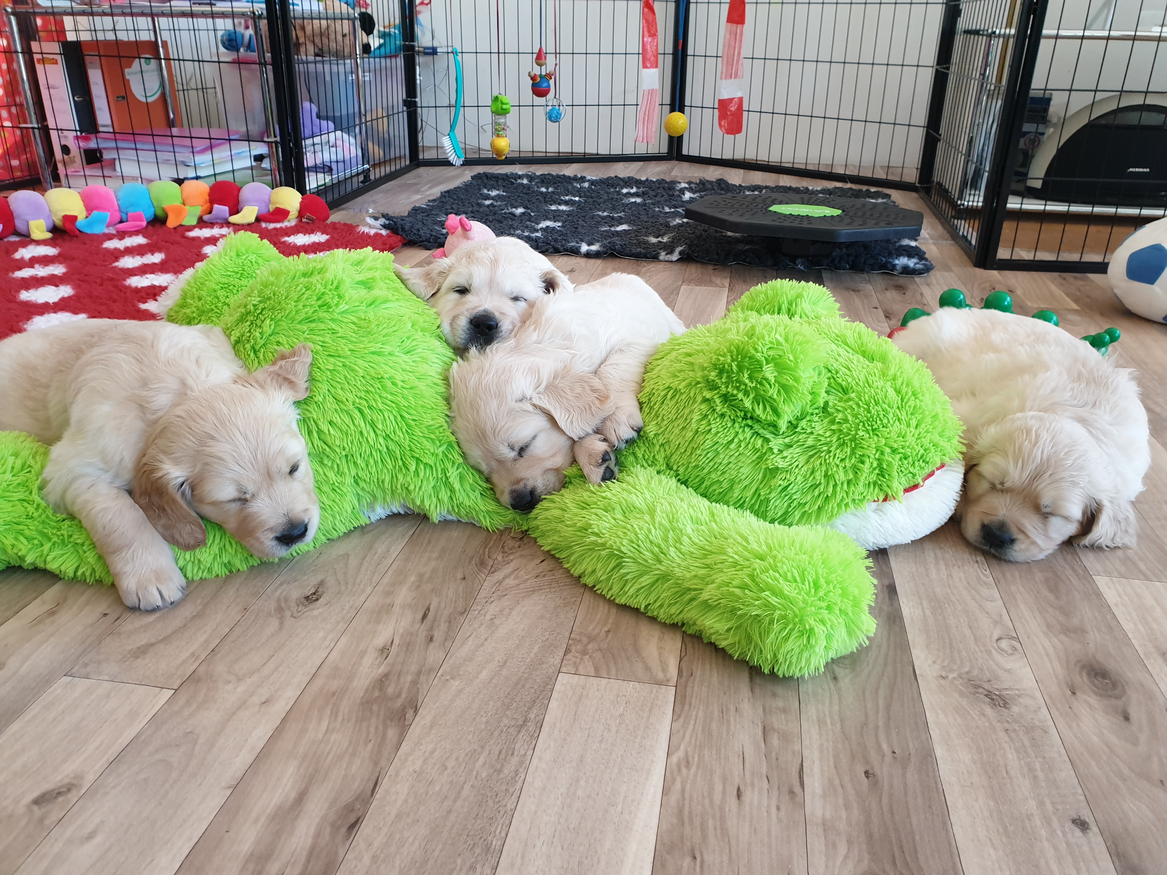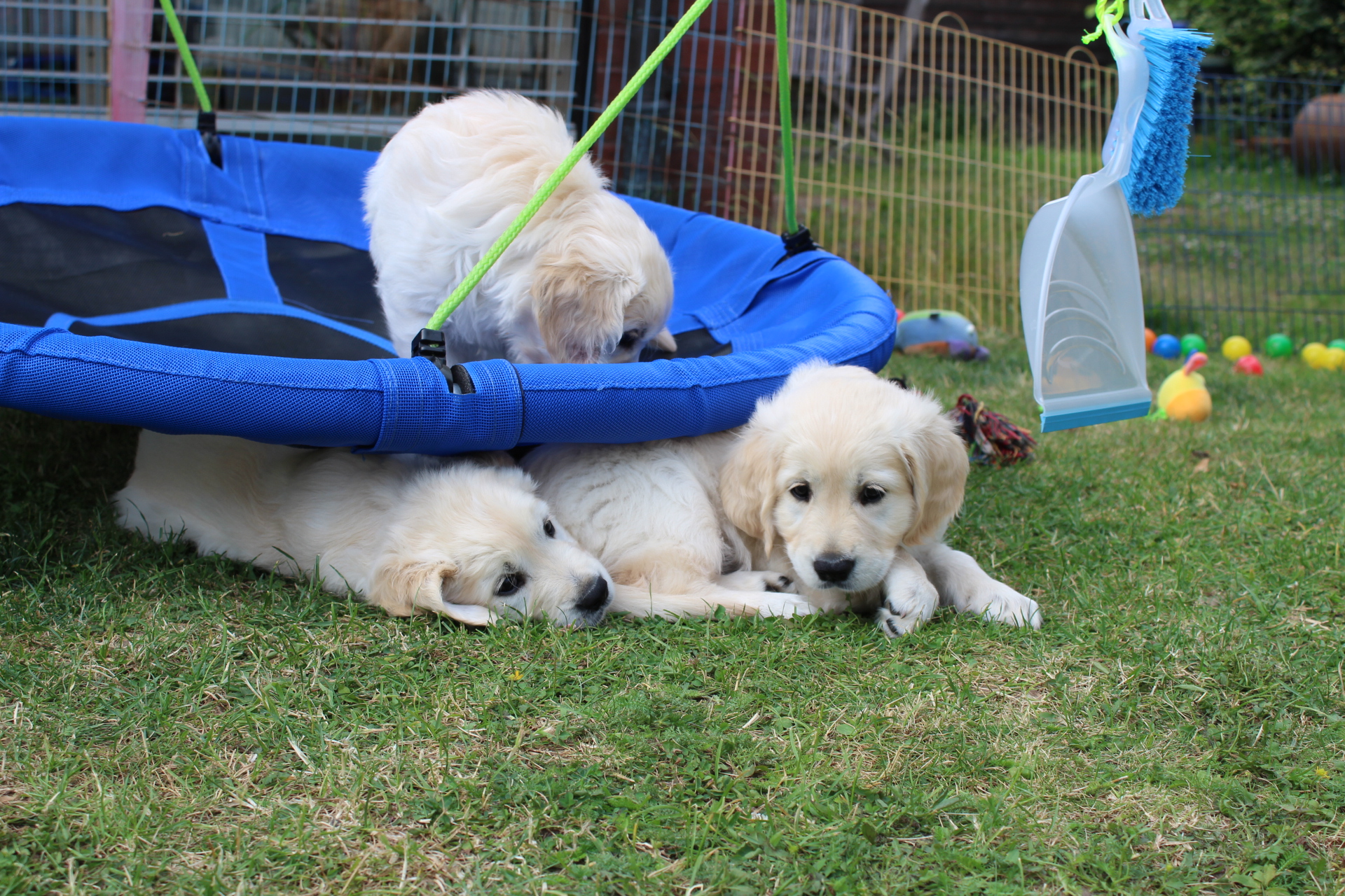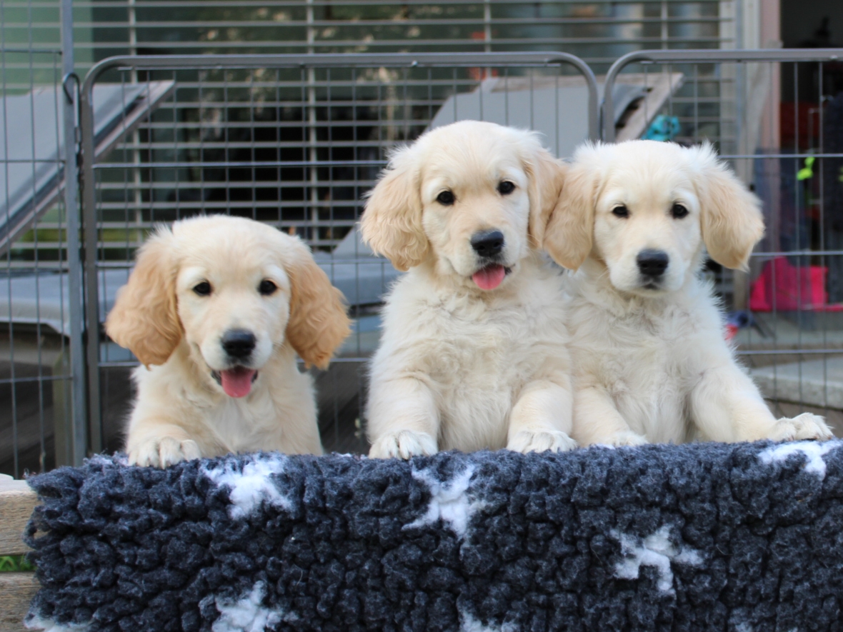Unsere Welpen werden bei uns zu Hause geboren und wachsen im Beisein unserer Familie und unseren großen Hunden auf. In dieser Zeit geben wir alles, um unsere Welpen bestmöglich auf den bevorstehenden Alltag vorzubereiten. Dadurch, dass die Kleinen bei uns im Wohnzimmer aufwachsen, lernen sie von Anfang an jegliche Alltagsgeräusche, wie z.B. Telefon, Staubsauger, Fernseher, Radio etc. kennen. Ab einem Alter von etwa vier Wochen bieten wir ihnen zusätzlich einen großen Gartenauslauf mit ausreichend Spielmöglichkeiten an. Von nun an freuen wir uns auch über regelmäßigen Besuch der zukünftigen Welpenfamilien. Ab einem Alter von 6-7 Wochen unternehmen wir die ersten kleinen Ausflüge in die Natur, sodass die Welpen bevor sie ausziehen auch schon ihre erste Autofahrt gemacht haben.