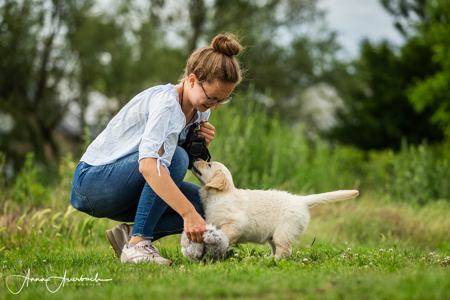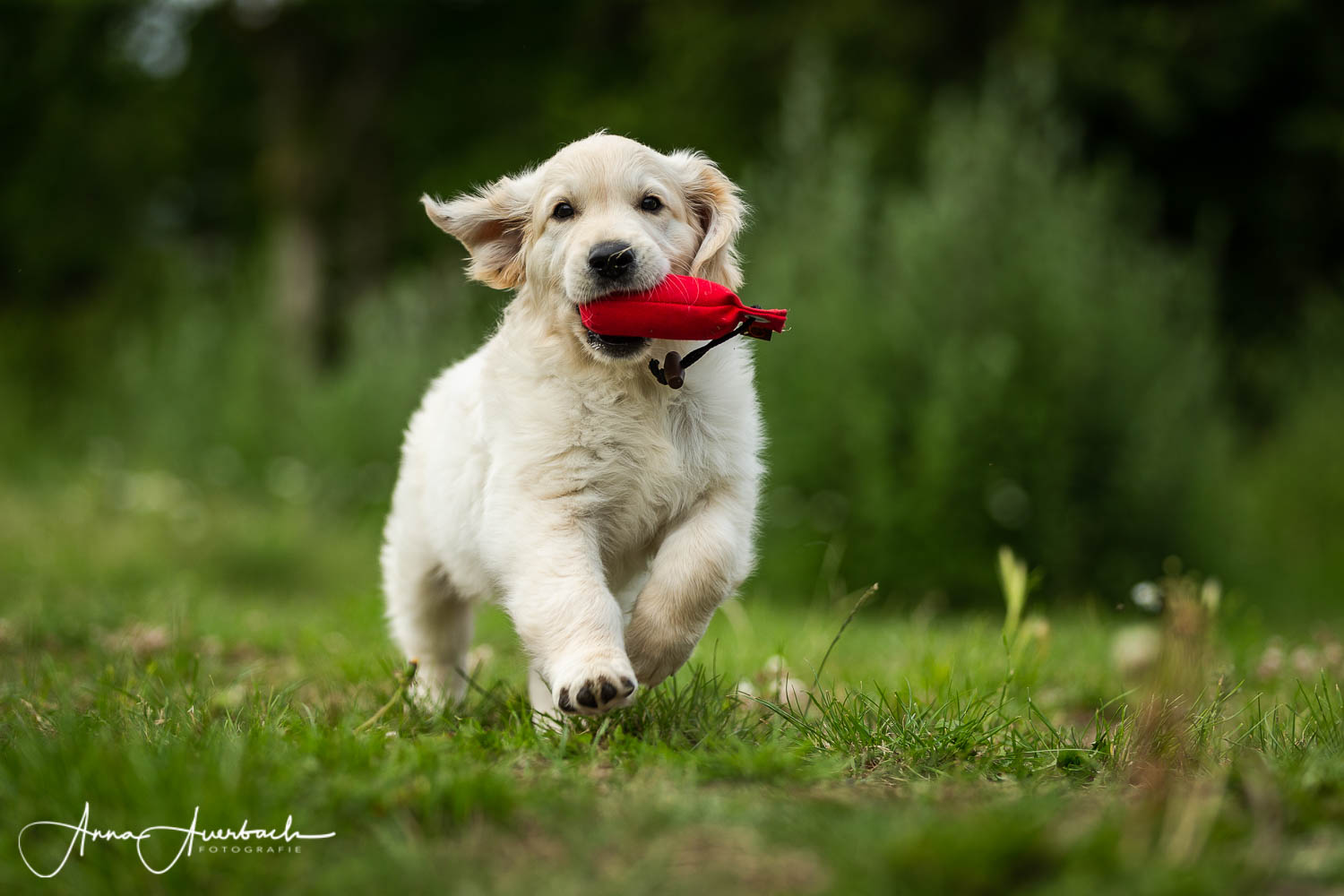 Eigenschaften, wie geduldig warten zu können, Verträglichkeit mit Menschen und Artgenossen, Ausgeglichenheit, der Drang gefallen zu wollen, Leichtführigkeit etc… all das macht den Golden Retriever zu einem perfekten Begleiter im Alltag. All diese Eigenschaften wurden ihm jedoch angezüchtet, um ihn zum perfekten Jagdbegleiter zu machen, denn der Golden Retriever ist ein Jagd- bzw. Apportierhund. Damit der Golden Retriever nach wie vor solch ein perfekter Alltagsbegleiter bleibt, ist es uns wichtig ihn weiterhin entsprechend seinen ursprünglich angedachten Aufgaben zu beschäftigen, und trainieren daher regelmäßig mit unseren Hunden- insbesondere im Dummybereich. Daher achten wir bei der Auswahl der Deckpartner auf die Erhaltung dieser Anlagen und legen großen Wert darauf, dass auch unsere Nachzucht später retrievergerecht beschäftigt wird.